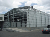 steelwork incorporating roof sheeting, side cladding and alucushion